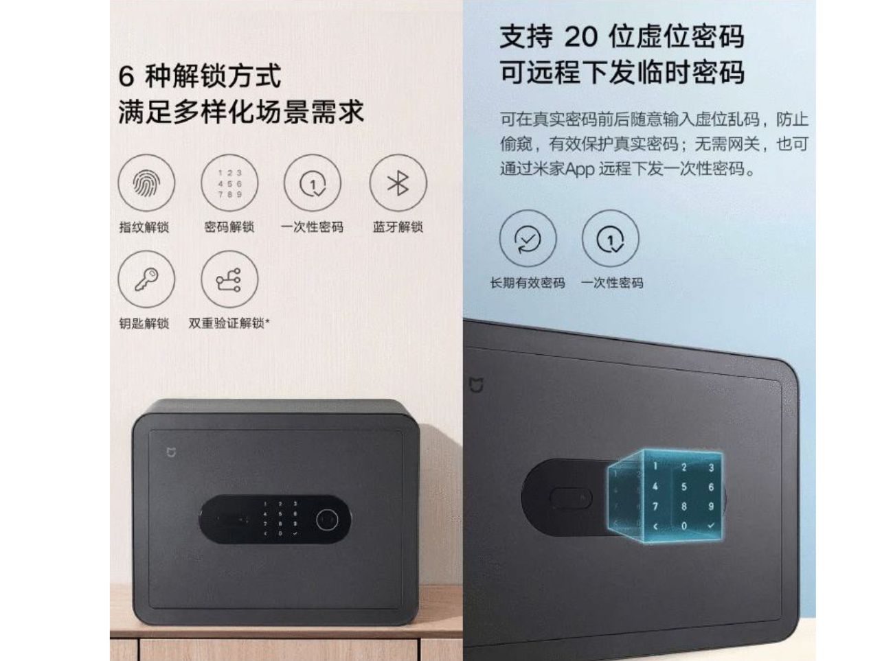 Bảo mật an toàn với 6 tính năng mở khoá của Két sắt Xiaomi Mijia
